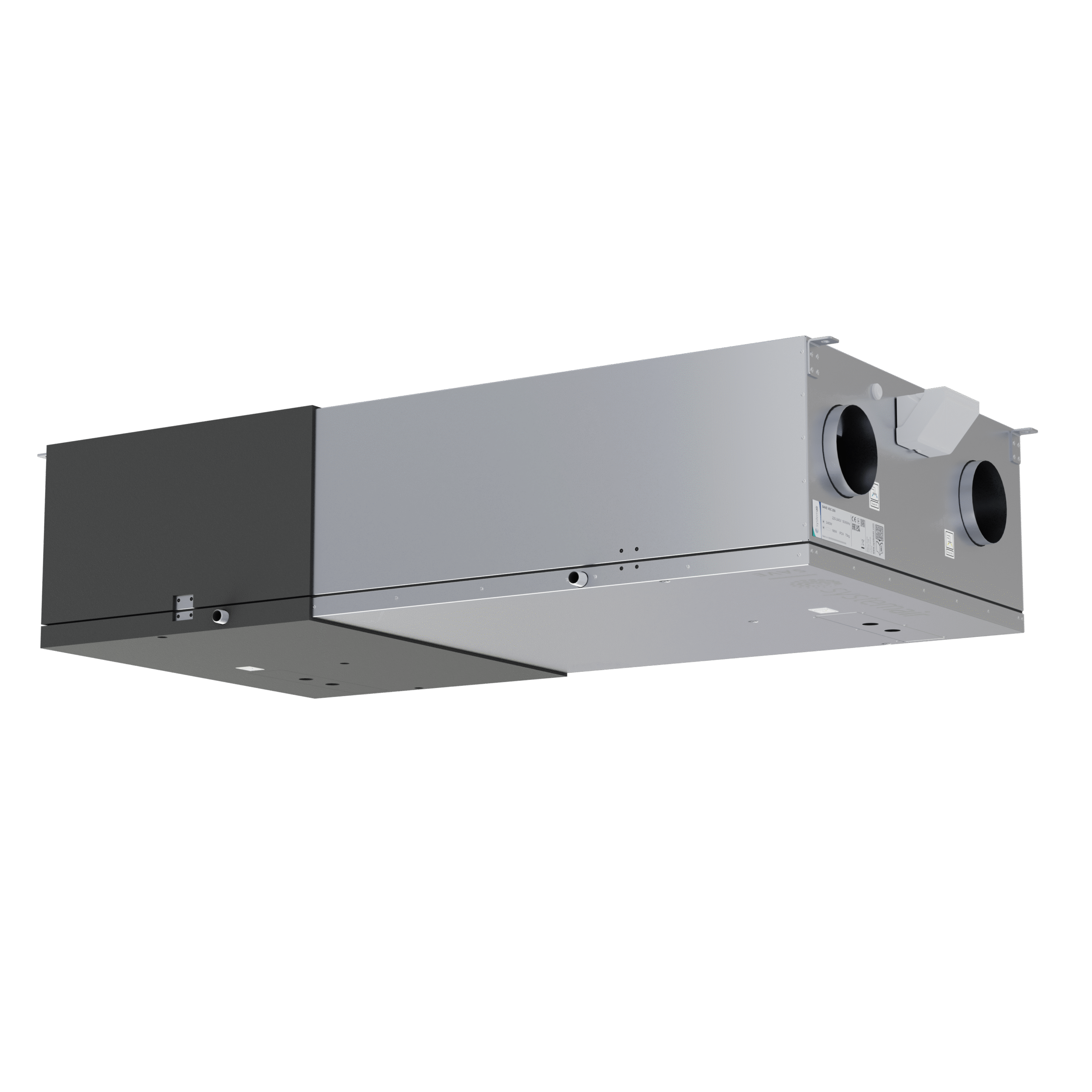 Küljelt ühendatav lakke paigaldatav tõhus vastuvooluseade kodudesse, kus ventileeritavat pinda on kuni ca 200m2.